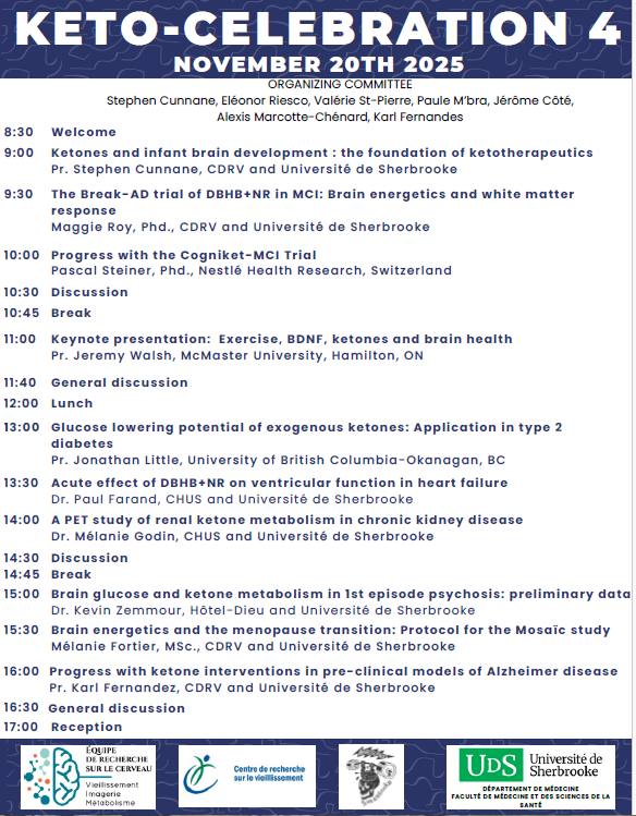 Le comité organisateur vous invite à participer à la 4e édition du Keto-Celebration, le 20 novembre de 8h30 à 17h00. La journée de conférence se déroulera en anglais. Il est possible d’assister en présence (collation et dîner inclus) ou en ligne. Le programme se trouve en annexe.